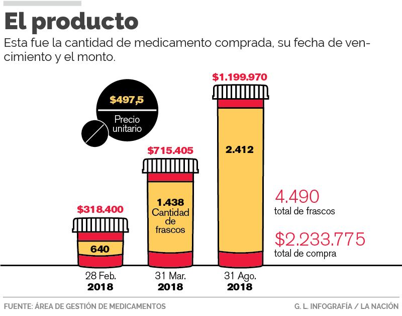 Además, encontró evidencia de la disponibilidad de 4.490 unidades de ese producto con fechas de vencimiento entre febrero y agosto de 2018. Según anota el informe, "el riesgo de vencimiento" se calculaba en más de ¢975 millones.