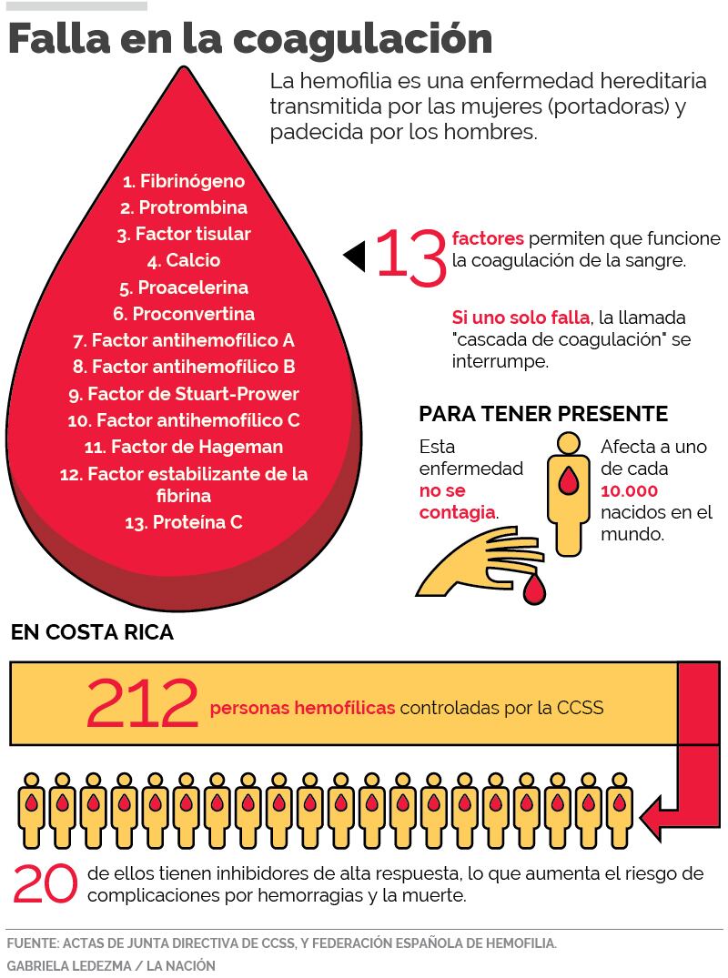 "Son pacientes que sangran y cuando tienen inhibidores sangran más y tienen más complicaciones producto de su enfermedad. Se les da un medicamento que previene el sangrado. El factor Feiba se incluyó en la Lista Oficial de Medicamentos (LOM) desde el año 2011 con una idea de distribuir recursos y disminuir el consumo del Factor VII que ya se tenía en la Institución", explicó la especialista en la presentación técnica que se le hizo a la Junta Directiva de la CCSS para justificar la firma de un convenio de cooperación.