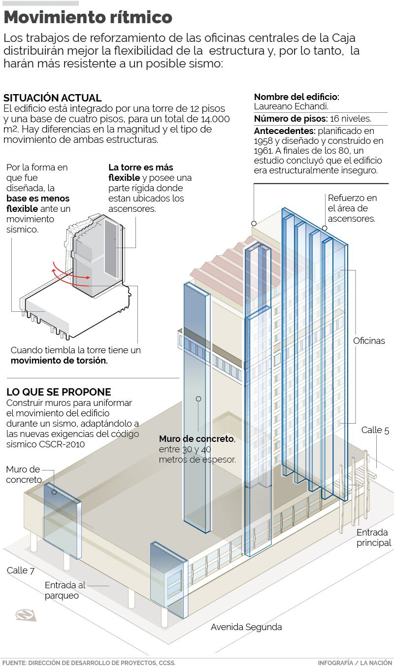 “Para llevar a cabo el proyecto reforzamiento estructural es necesario desalojar por completo el edificio Laureano Echandi, proceso que se ha realizado de forma paulatina, pues no hay una sola edificación cercana que pueda albergar a más de los 900 funcionarios que tienen como sede el edificio de oficinas centrales”, explicó Paquita González, directora de la Dirección Administración de Proyectos Especiales (DAPE).