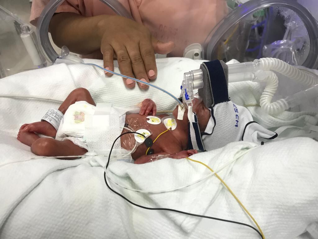 Nicole, nacida a las 24 semanas de gestación, con un peso de 740 gramos y una talla de 33 cm, se convirtió en la niña símbolo. Desde hace dos meses y medio, ella está internada en la Unidad de Neonatología de ese hospital.
