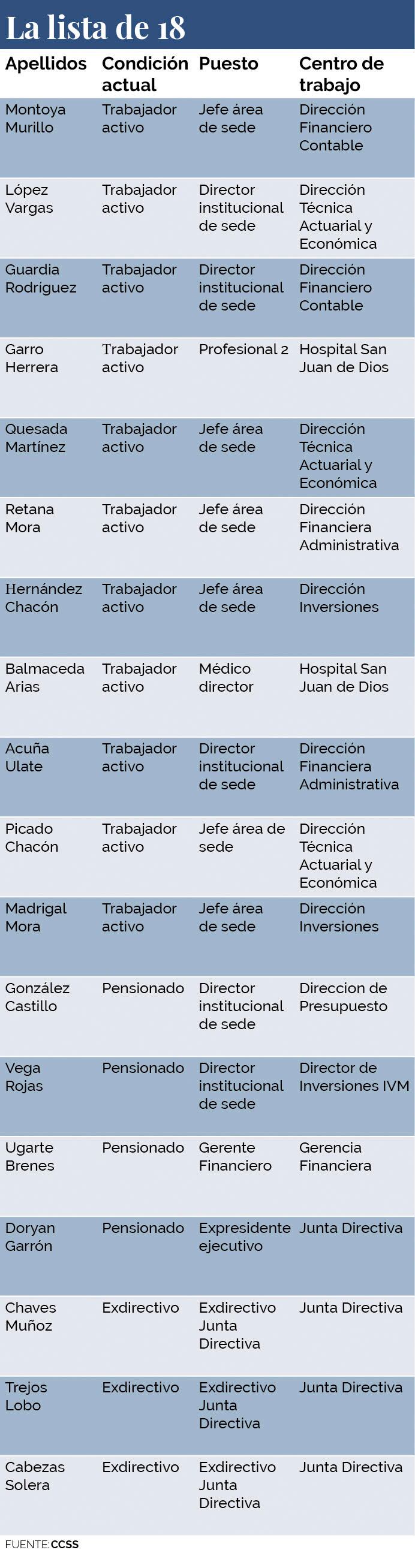 De los 18 citados en la acusación de la Fiscalía, 11 aún trabajan en altos puestos de la CCSS.