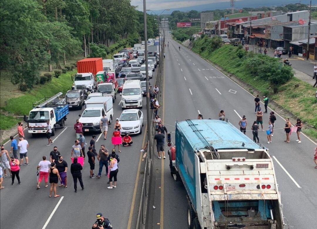 A la 1:30 p. m. los manifestantes levantaron el bloqueo en el sentido Alajuela-San José, pero persistieron en la interrupción del tránsito en el sentido contrario por un corto tiempo más.