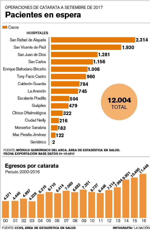 Los datos del Área de Estadística en Salud de la Caja muestran que las operaciones de catarata en los hospitales púbicos pasaron de 3.178 en 1997 a 11.448 el año pasado.