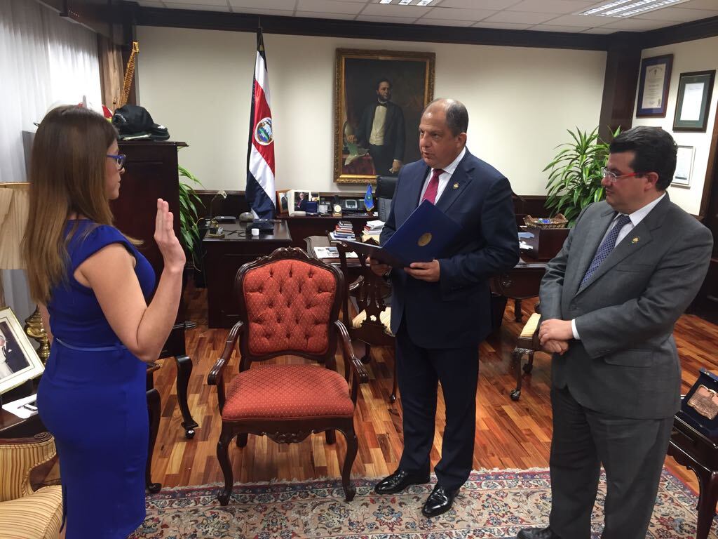 Mayorga se juramentó ante el presidente Luis Guillermo Solís durante la mañana, y dedicará los próximos dos días a reunirse con sus equipos de trabajo, informó Casa Presidencial.