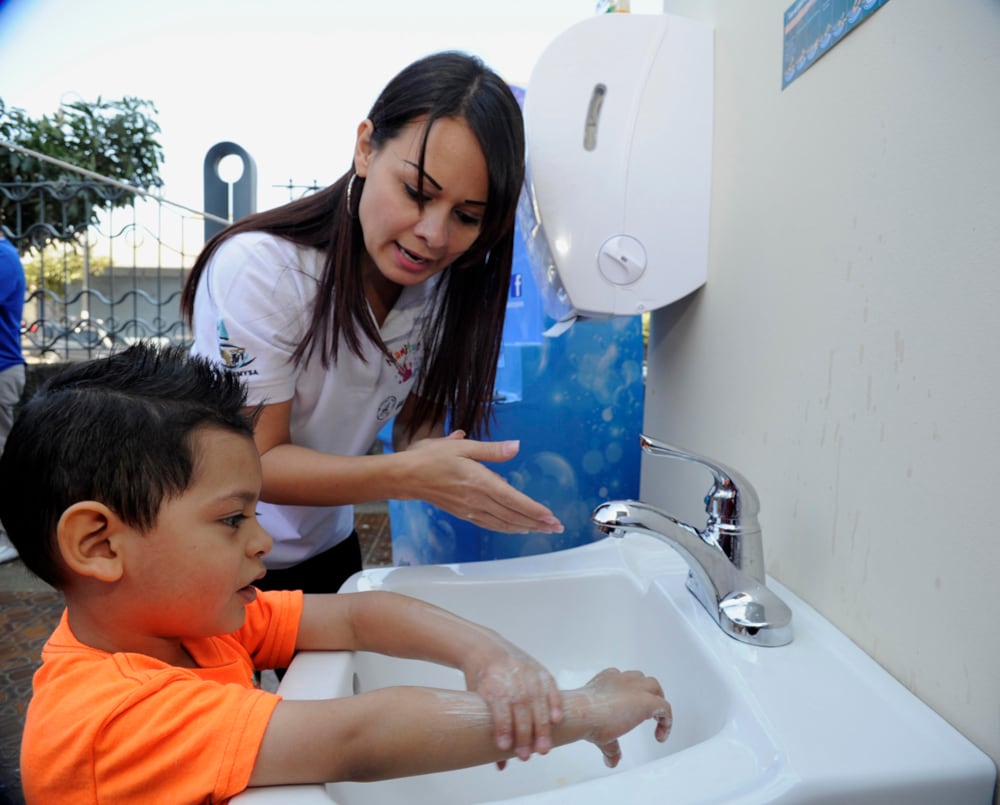 El contagio del rotavirus también se previene con lavado de manos, pues su vía de transmisión es ano-mano-boca. Sonia Delgado enseñó a Jefry Espinoza, de 4 años, cómo lavarse bien. | ARCHIVO /GRACIELA SOLÍS (GRACIELA SOLIS)