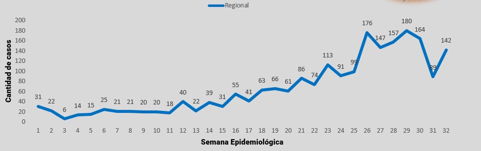 “El comportamiento en ascenso en la cantidad de casos semanales en la Región Huetar Atlántica se experimenta desde la semana epidemiológica 12 (del 20 al 26 de marzo) y se mantiene el ascenso a partir de la búsqueda de casos y personas afectadas que asisten a los centros médicos para su valoración respectiva”, explicó Mena Selles.