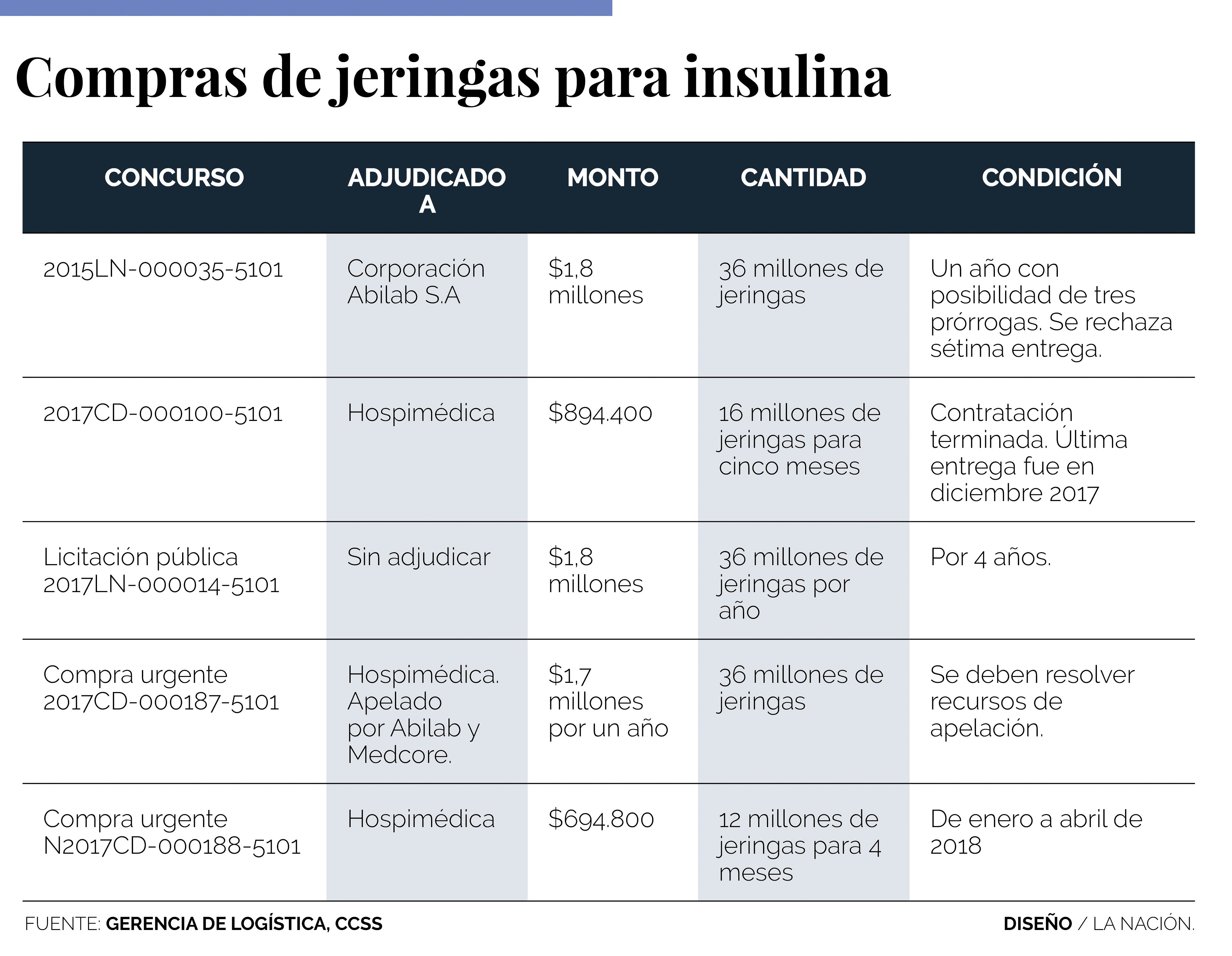 Esas adquisiciones de emergencia surgen luego de que la Caja frenó la distribución de jeringas a la Corporación Abilab S. A., empresa que originalmente ganó una licitación que debía abastecer la demanda durante cuatro años.