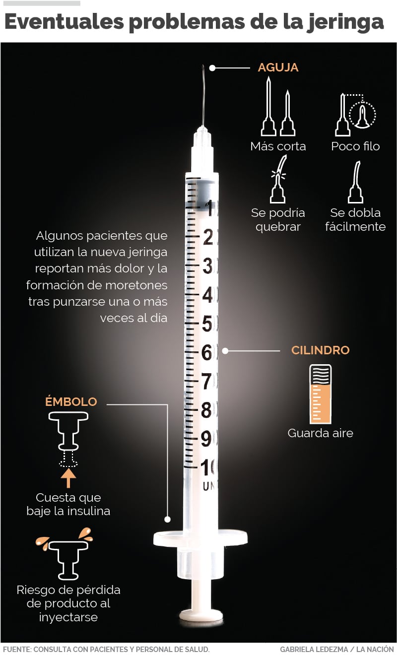 "A veces uno se inyecta y se sale un poco de insulina, esto me preocupa porque el producto no llega adonde tiene que llegar", agregó Laura Murillo, quien tiene una hija que también es diabética tipo 1 y sufre sus mismos problemas con la jeringa.