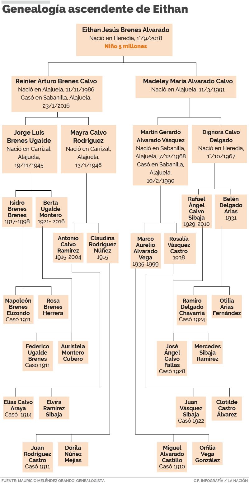 Revisar el pasado de Eithan Jesús Brenes Alvarado llevó al genealogista Mauricio Meléndez a descubrimientos interesantes entre los antepasados del tico 5 millones.