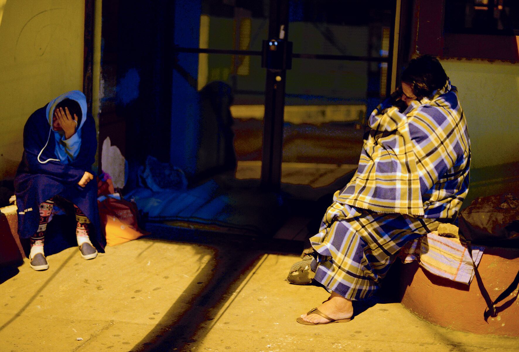 A su lado, un tío, un primo y su mamá, bien cobijada, reposaban sobre espumas o cartones desde la noche anterior.