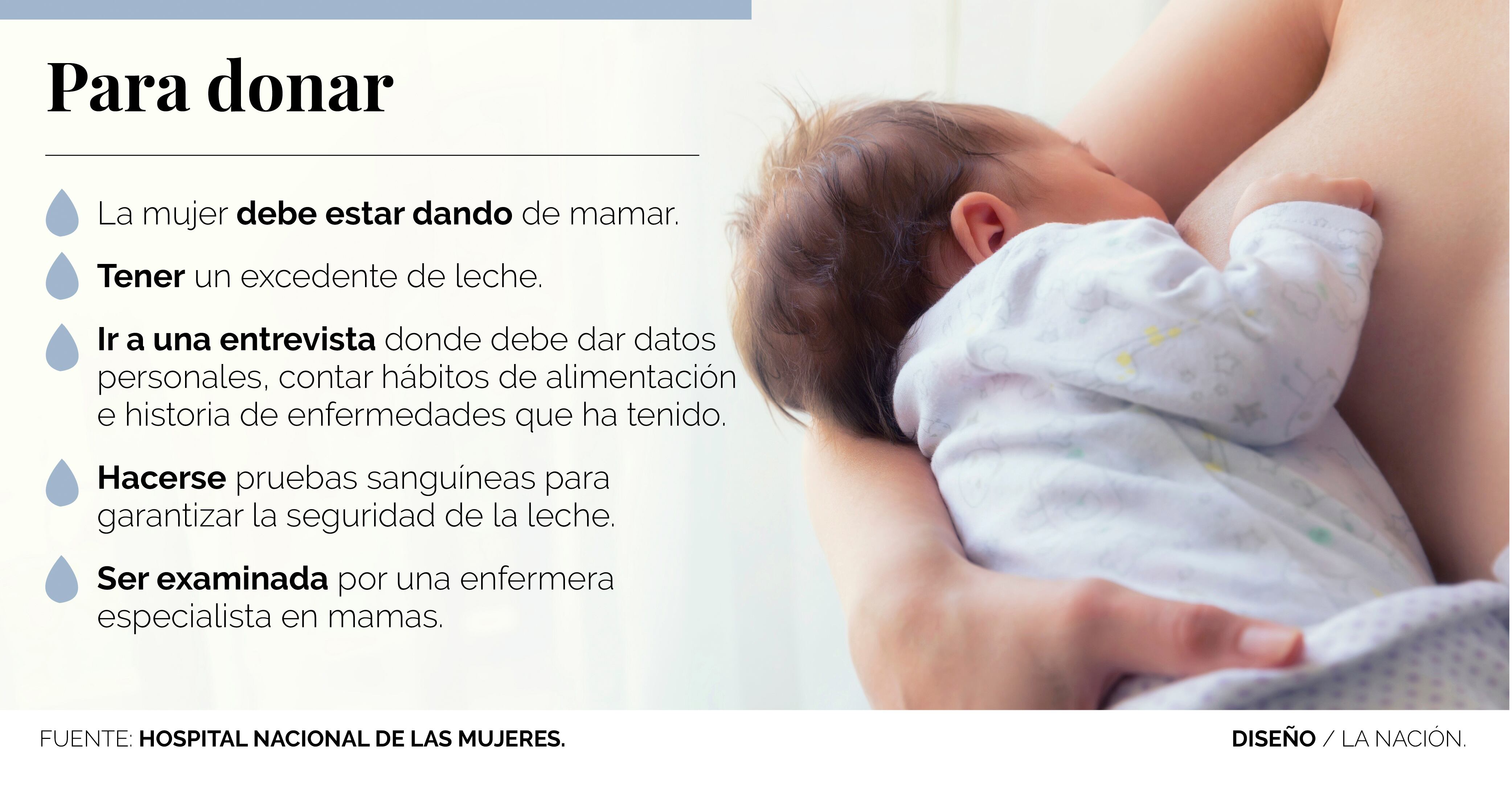 Carmen Cabalceta López , de ese banco de leche, explicó que, entre los requisitos que deben cumplir las mujeres que donen está el tener un excedente de leche y realizar una entrevista, donde deben contar sus hábitos de alimentación y su historial de enfermedades.