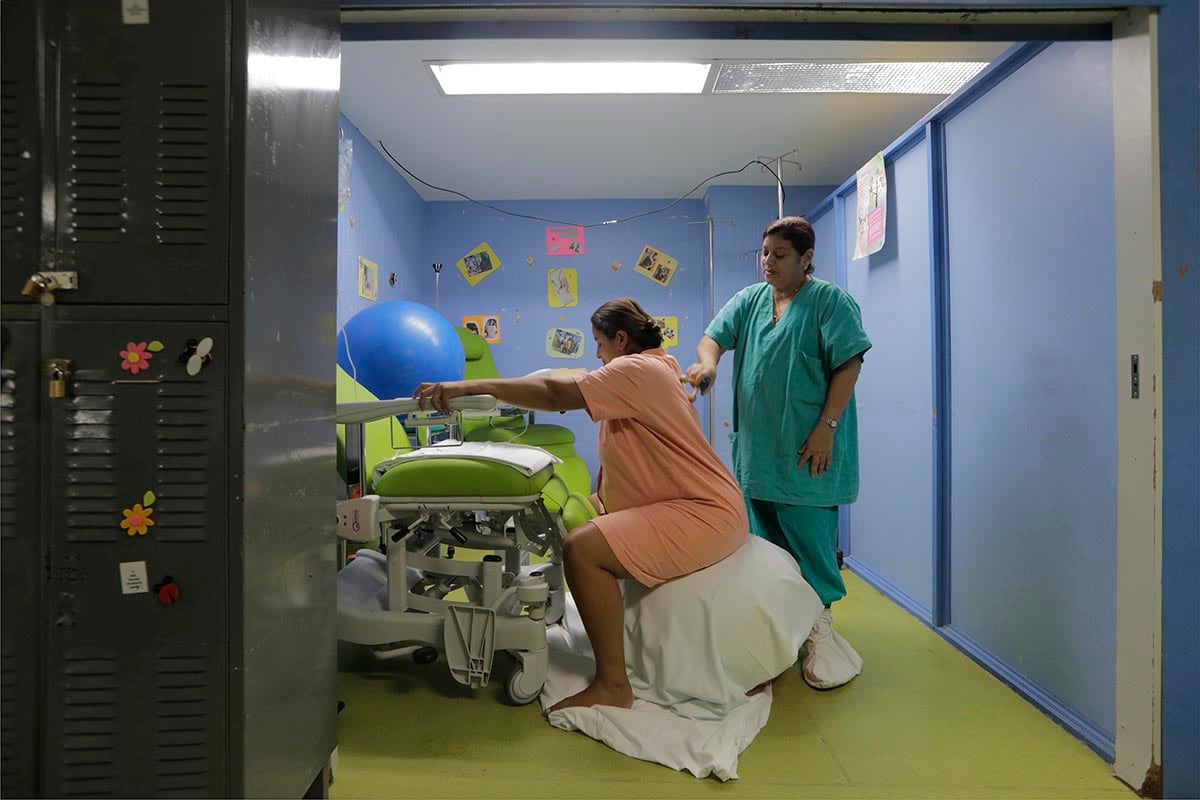 En uno de los salones acondicionados especialmente para la relajación de las parturientas, estaba Evelyn Céspedes Muñoz, experimentando cada una de las contracciones.