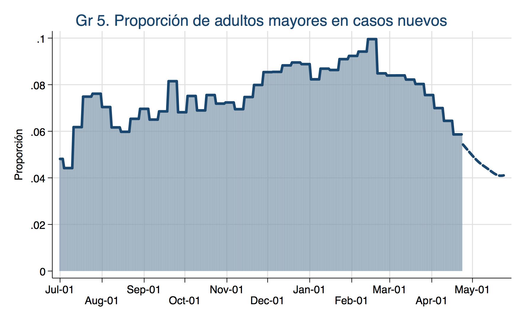 A mediados de febrero, los mayores de 65 años representaban el 10% de las nuevos casos reportados, la semana anterior cayó al 6% y se prevé, que continúe bajando a menos del 4% para dentro de un mes.