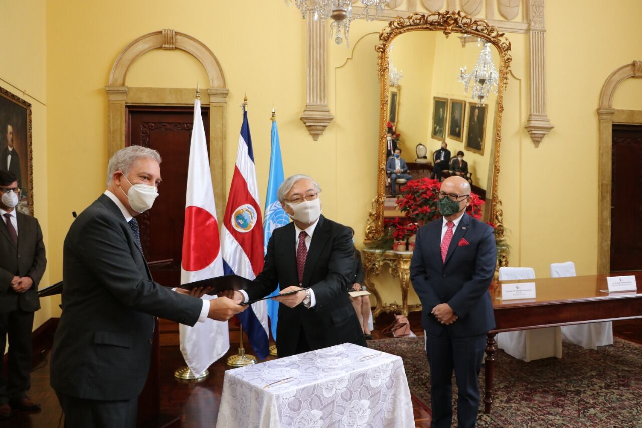 El convenio fue firmado este jueves 17 de diciembre en el Ministerio de Relaciones Exteriores y Culto por el embajador de Japón, Komatsu Shinjiro, y el representante de Unops en Costa Rica, Alejandro Rossi.