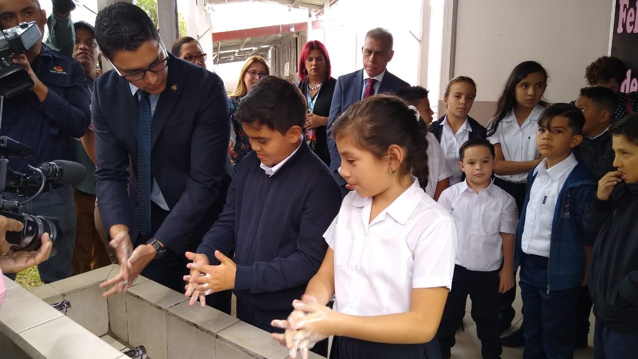 “Siempre hay que lavarse las manos. Cada vez que usted va a tocarse la cara, los ojos, hay que lavarse las manos. Llévenle este mensaje a sus papás”, expresó Daniel Quesada, coordinador del Centro de Atención de Emergencias y Desastres (CAED) de la CCSS.
