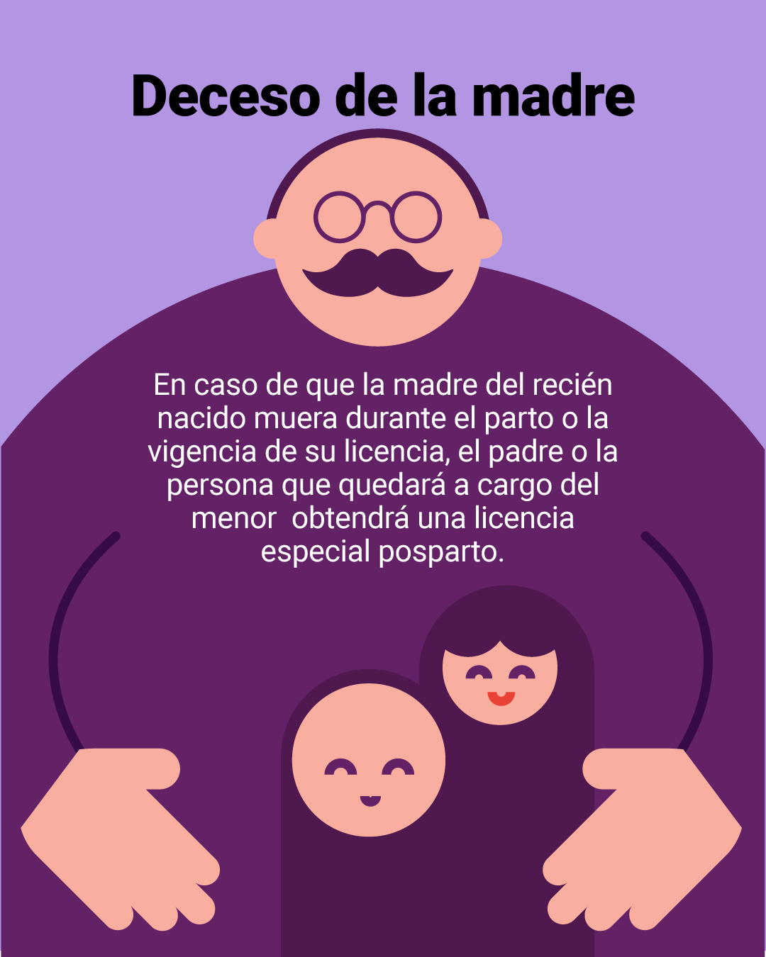 En caso de muerte de la madre durante el parto o la vigencia de su licencia, el padre biológico tendrá derecho a una licencia especial posparto.