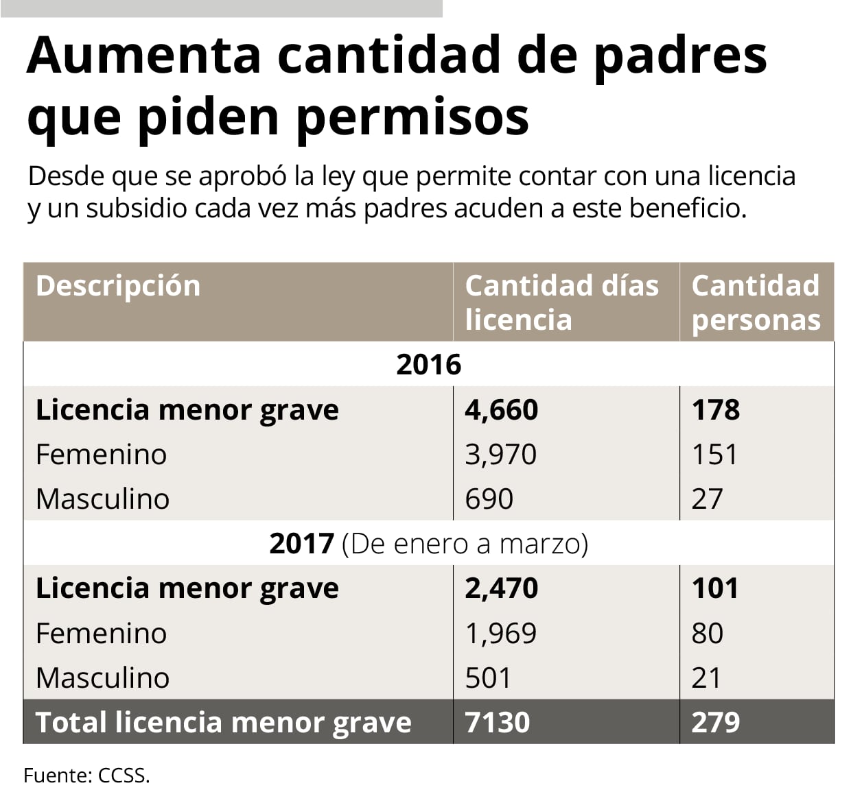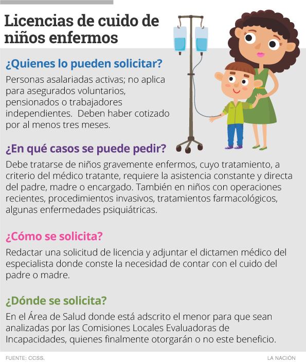 A diferencia de las incapacidades que reconocen solo un porcentaje del salario a los trabajadores, la licencia de cuido para hijos enfermos concede el pago de un subsidio de hasta el 100% del sueldo en los casos en que la remuneración es menor a los ¢852.000 mensuales.