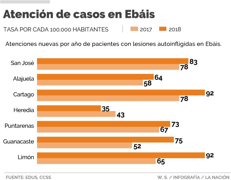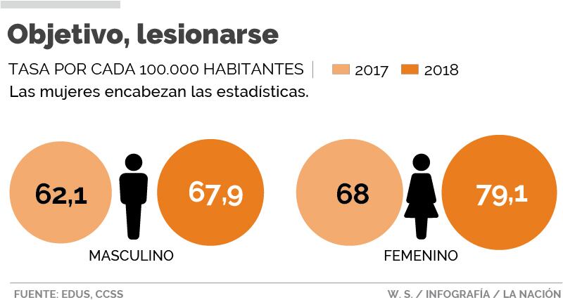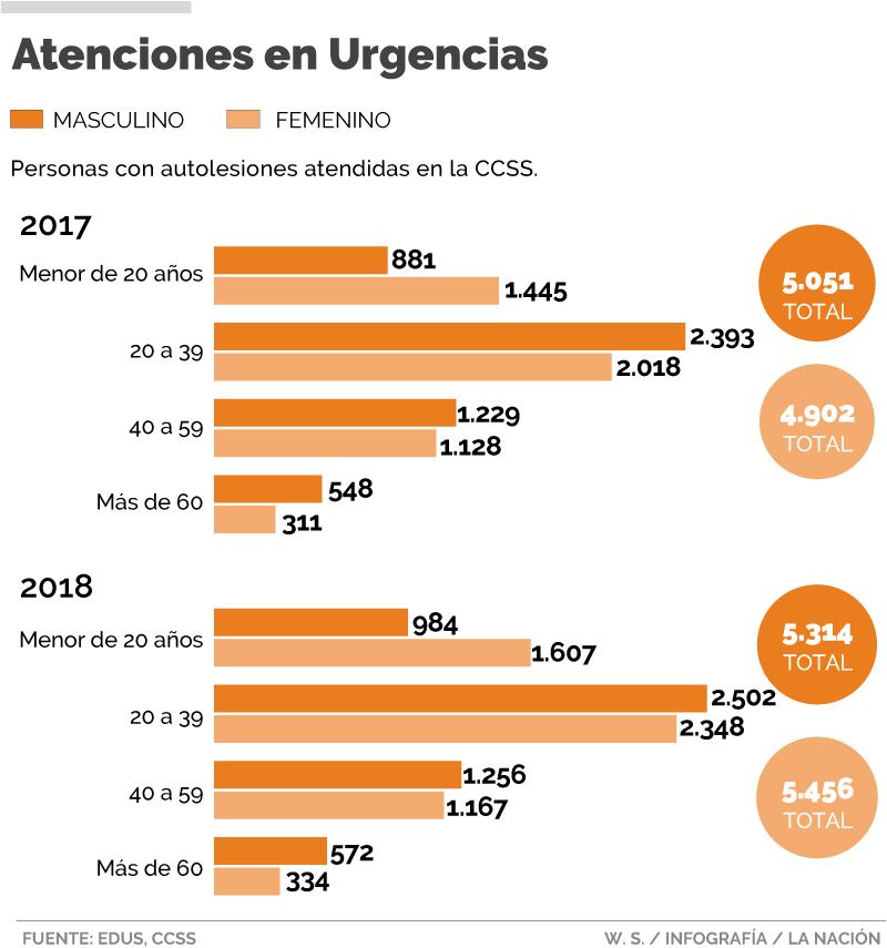 El Sistema de Vigilancia Epidemiológica de la Caja Costarricense de Seguro Social (CCSS) realizó un análisis de las atenciones por lesiones autoinfligidas brindadas en el 2017 y el 2018, a solicitud de La Nación.