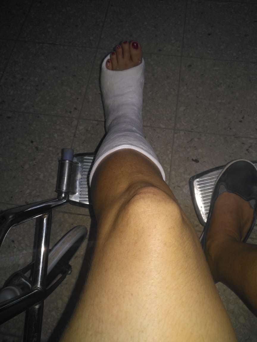 En el hospital, le colocaron una férula de yeso pesadísima para inmovilizar temporalmente el pie, mientras se liberaba un espacio en Ortopedia y la operaban.