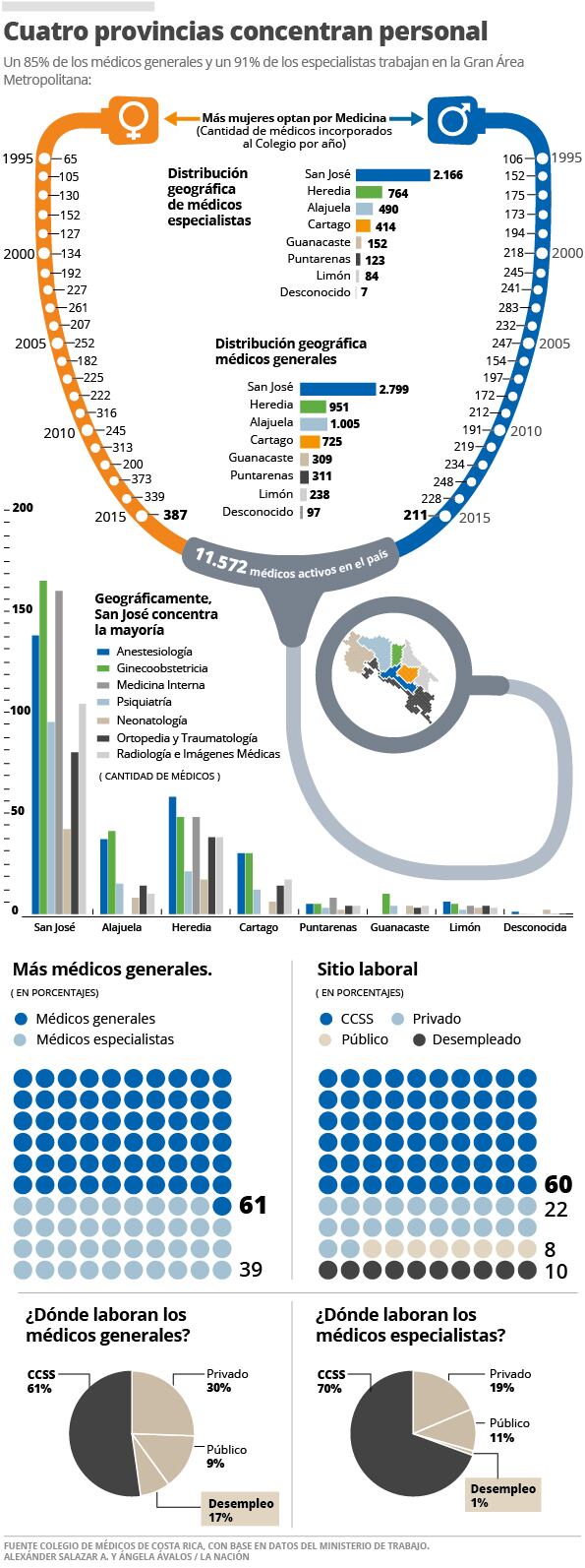 De los 11.572 médicos activos registrados en Costa Rica, un 61% (cerca de 7.000) son generales. El otro 39% son especialistas.