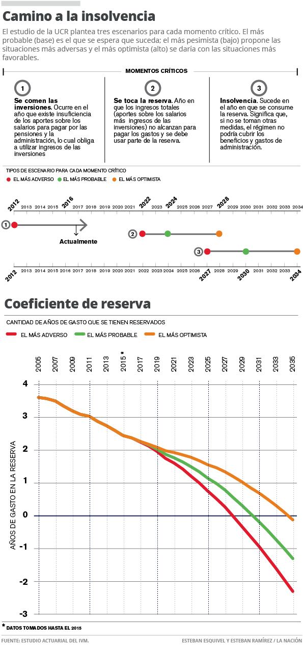 Uno de los documentos técnicos revisados es el informe actuarial de la Universidad de Costa Rica (UCR), el cual advierte de una posible crisis alrededor del 2023 si no se tomaban medidas relacionadas con el aumento de la edad (se propuso 70 años), cuotas y reducción de beneficios.