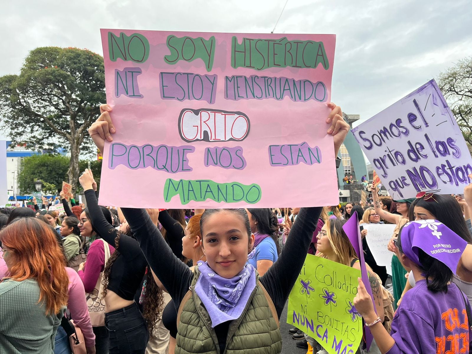Cientos de mujeres marchan la tarde de este miércoles 8 de marzo en San José, para conmemorar el Día Internacional de la Mujer, en medio de consignas contra la violencia sexual, el machismo y la desigualdad.