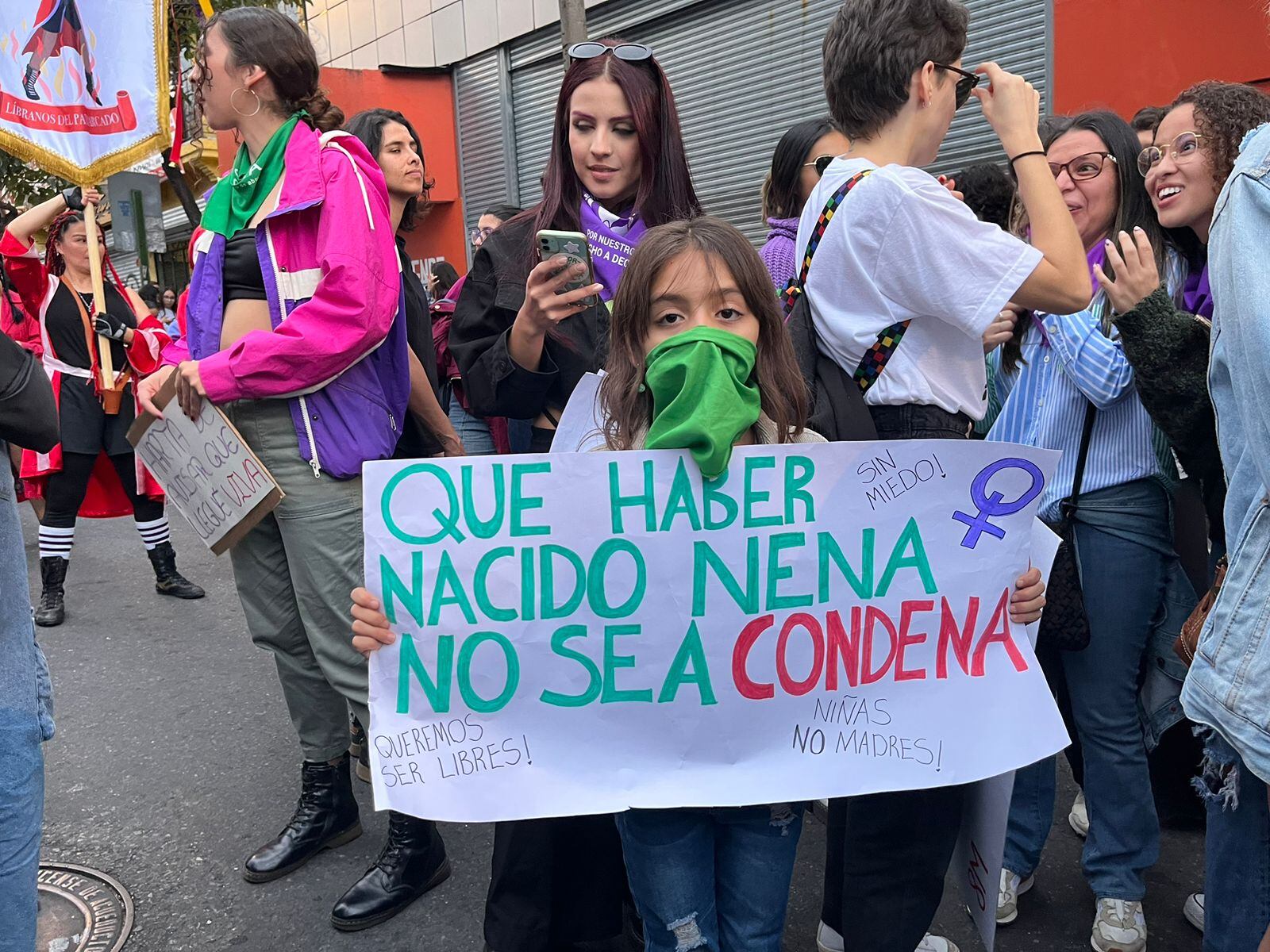 Entre los lemas que destacan en las pancartas también predominan los mensajes de protección de las niñas, contra el embarazo adolescente, el derecho al aborto libre y en contra de las relaciones impropias.