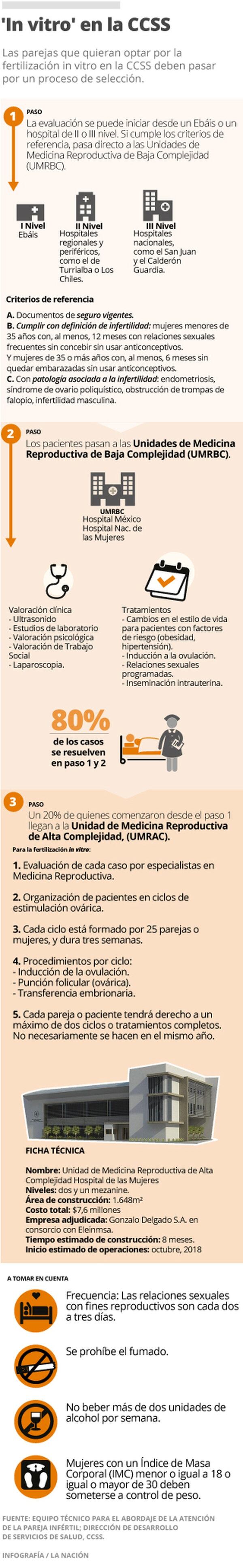 La institución creó 24 plazas para esa unidad. Ahí se invertirán $26.819 por transferencia (hasta dos por pareja), ese monto incluye todas las consultas, pruebas y medicamentos, informó la CCSS en julio del 2019.