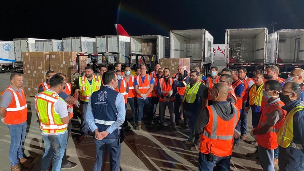 “A las 3:15 a. m., los camiones estaban cargados y a las 3:30 a. m. estaban saliendo hacia el almacén de la Caja”, explicó Macaya quien confirmó que los próximos dos vuelos llegarán esta noche y otro mañana a la medianoche.