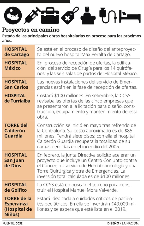 En ese mismo proceso están los hospitales San Carlos, San Juan de Dios, el Nacional de Niños y el Calderón Guardia.