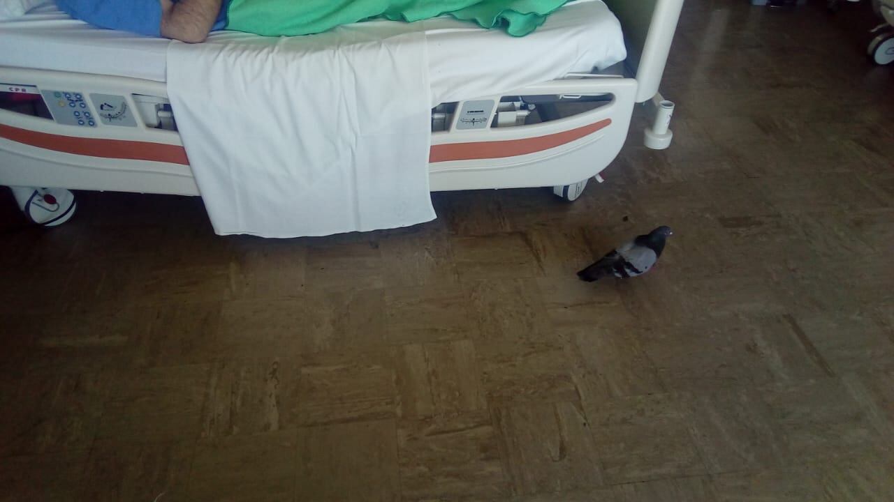 Familiares de pacientes internados en el Hospital México grabaron palomas circulando en los pasillos y entre las camas de los enfermos internados ahí.