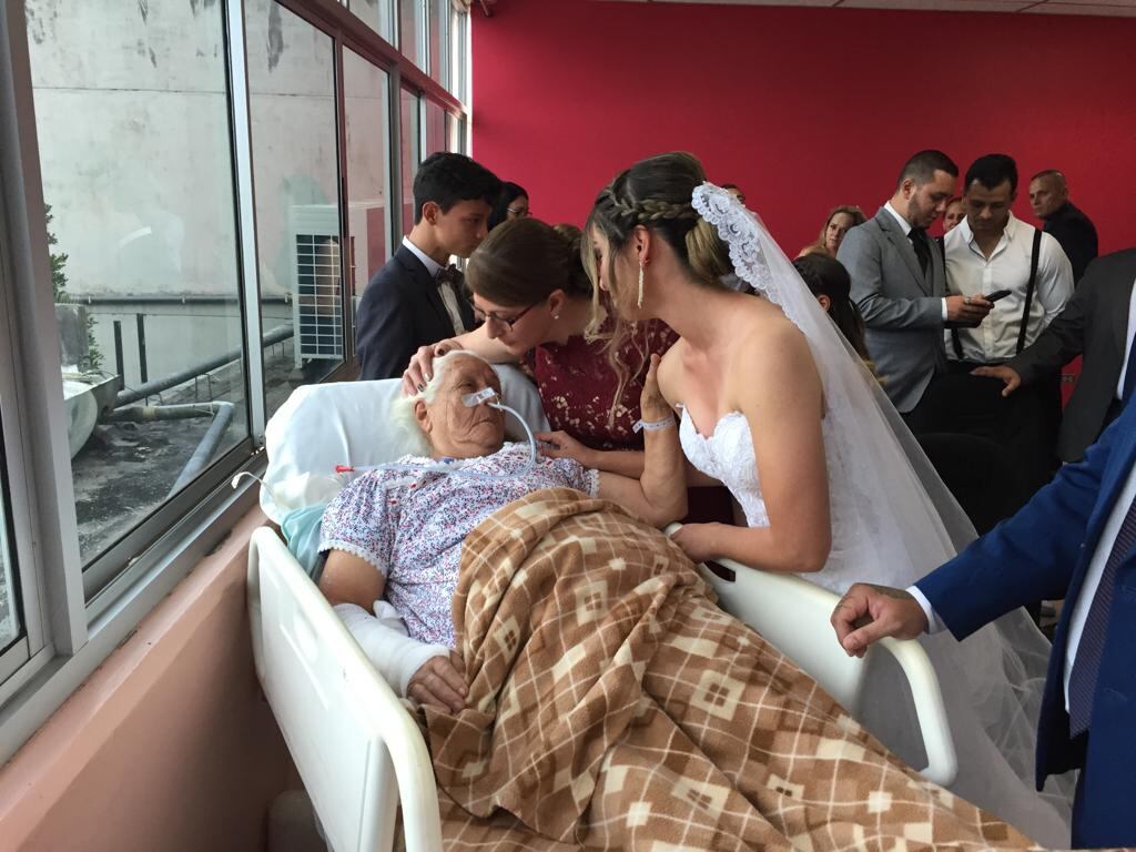 Además, dijeron que la ceremonia no superó la hora de tiempo y una vez terminado el acto, la abuelita y el padrino regresaron a sus camas en el hospital.