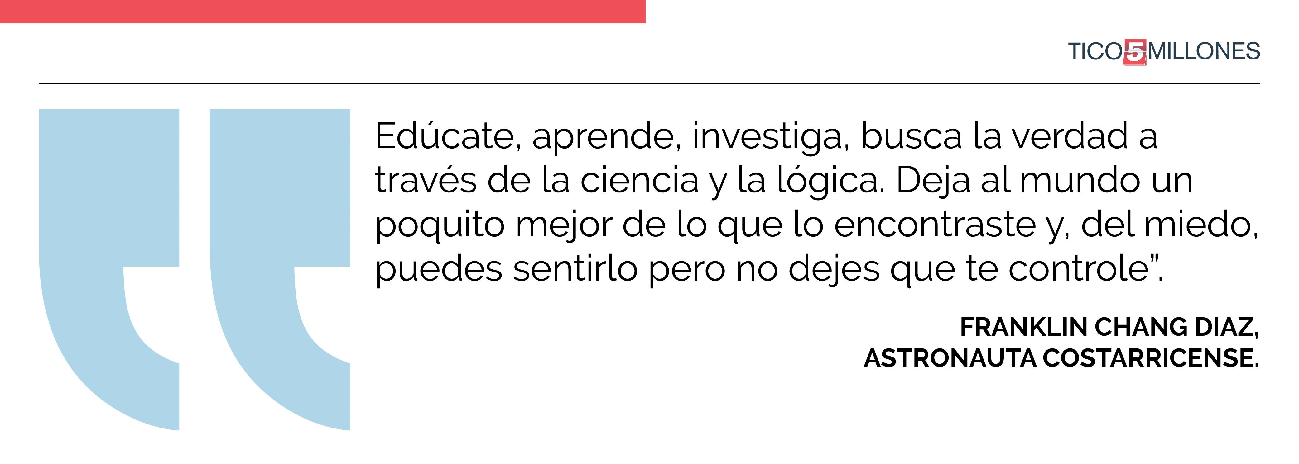 El astronauta costarricense Franklin Chang Diaz es una de las personas en el mundo que podrían tener una visión más cercana de lo que le esperará a Kaleb y al habitante 5 millones cuando les toque enfrentarse al trabajo o a nuevas estructuras sociales dentro de pocos años.