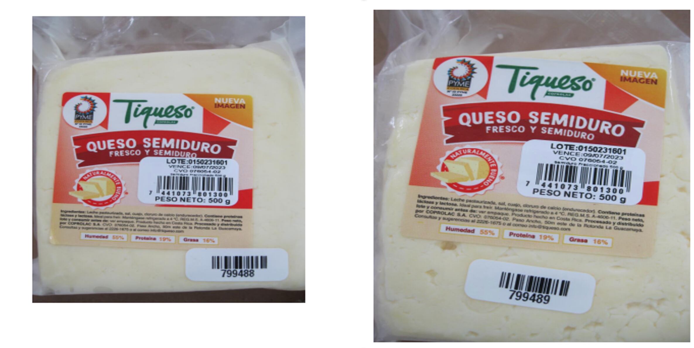 Lote 0150231601 del queso semiduro marca TIQUESO, registro sanitario: A-4606-11