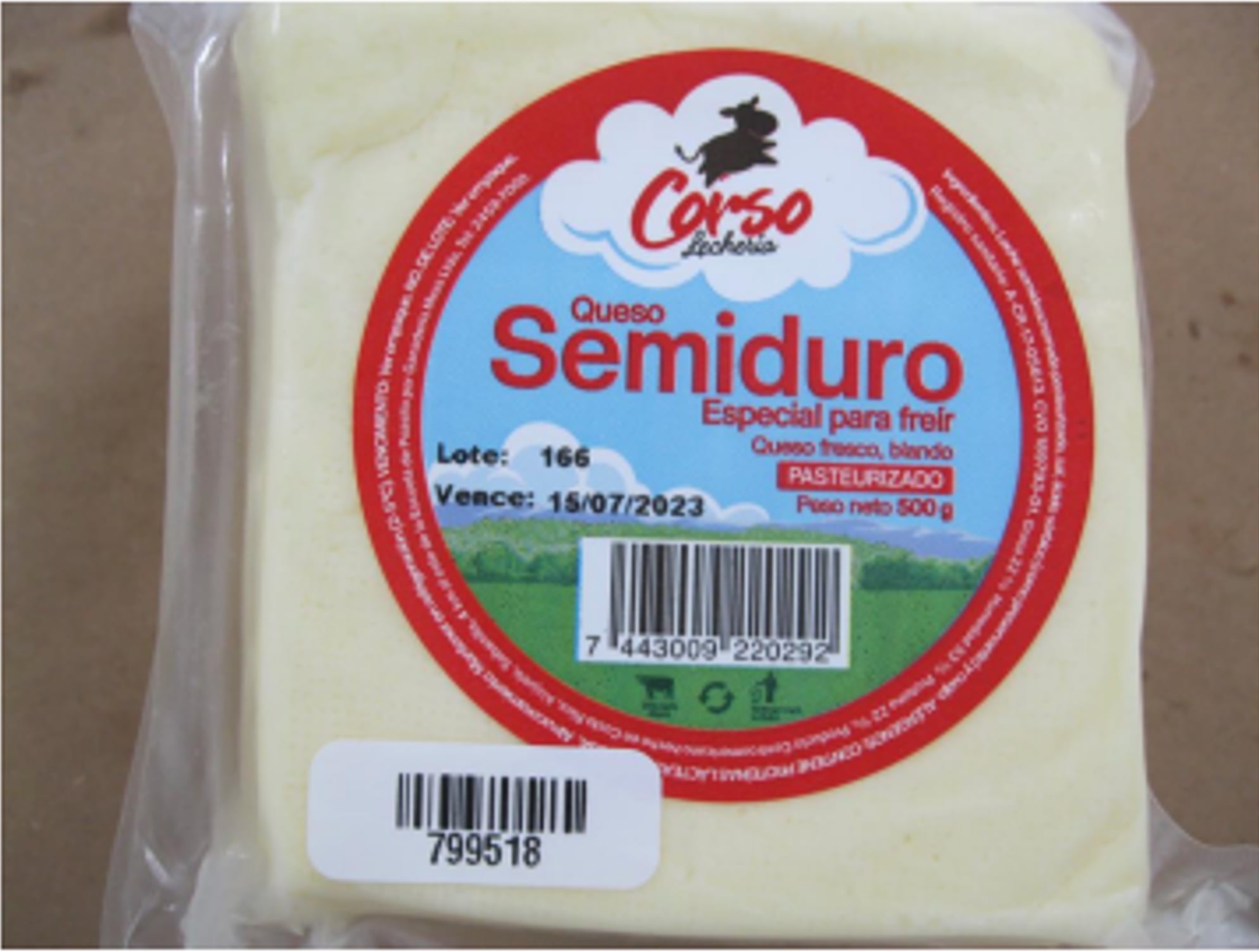 Lote 166 del queso semiduro marca CORSO, registro sanitario: A-CR-17-05613