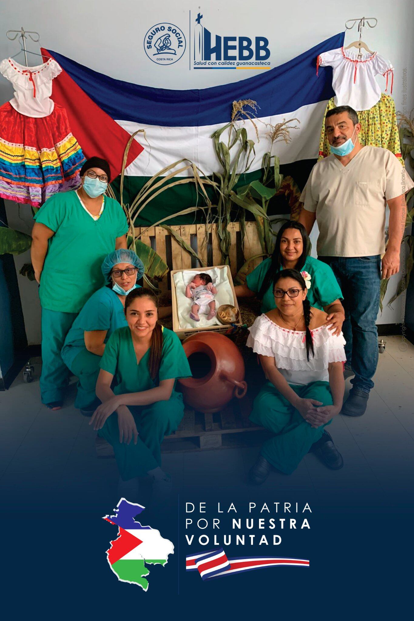 El Servicio de Maternidad del centro médico vistió a los infantes con unos trajecitos que tenían expresiones muy propias de la festividad y del pueblo guanacasteco, como el “¡Uyuyuy!” o la característica “¡Bomba!”