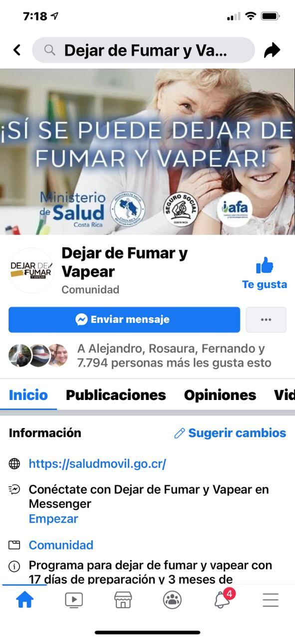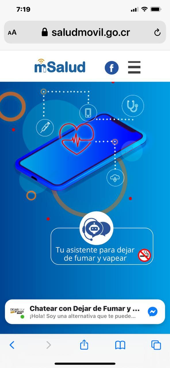 A esta herramienta se le conoce como chatbot, y funciona desde el 16 de abril del 2020 en la página de Facebook Dejar de fumar y vapear. Esta página es comandada por el Ministerio de Salud, la Caja Costarricense de Seguro Social (CCSS) y el Instituto sobre Alcoholismo y Farmacodependencia (IAFA).