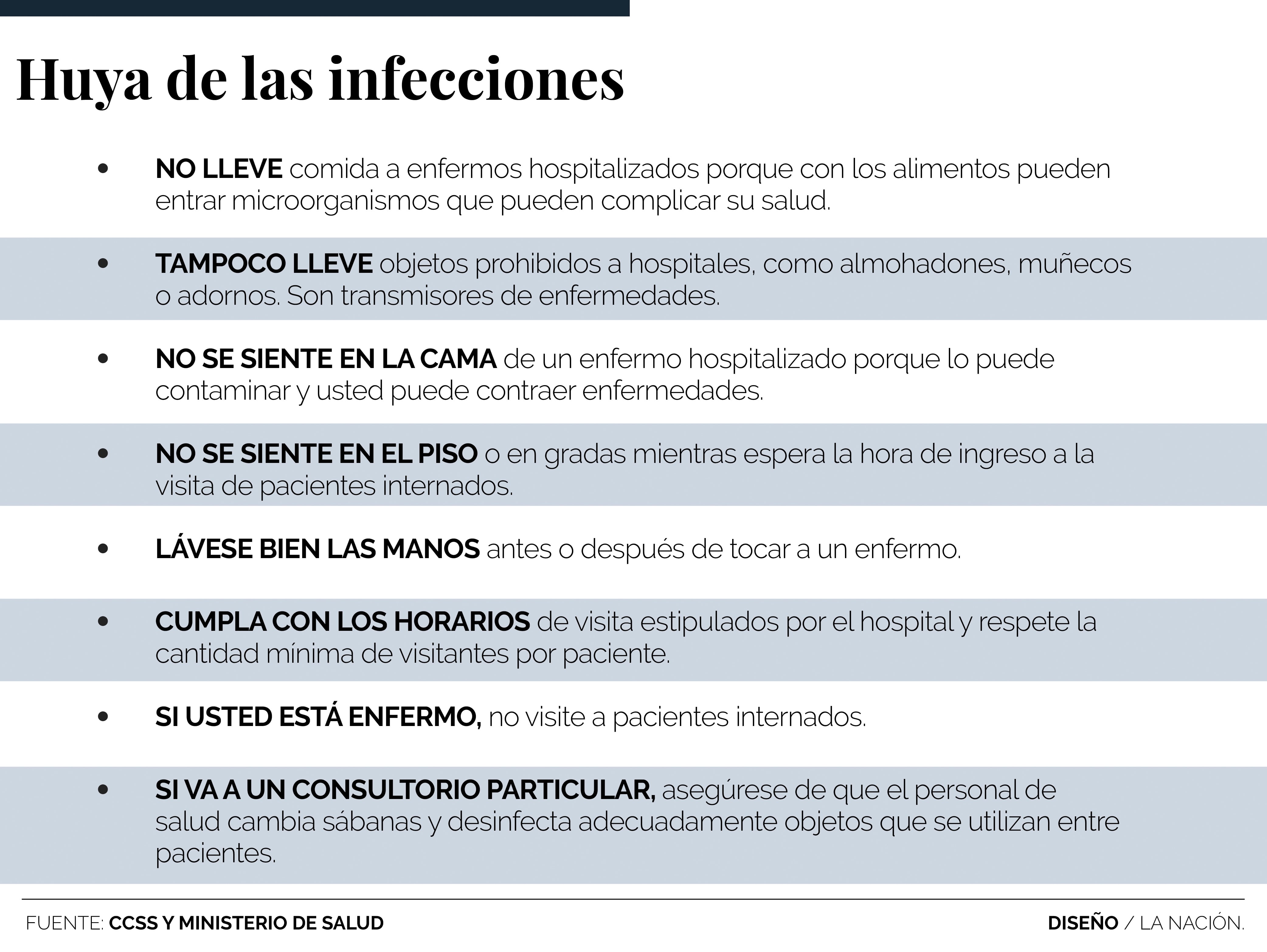 También fallan quienes visitan los hospitales en su calidad de pacientes o familiares de enfermos hospitalizados, advirtió Daniel Salas Peraza, director de Vigilancia de la Salud, en el Ministerio de Salud, donde se ha venido trabajando en esa primera norma nacional desde hace más de un año.