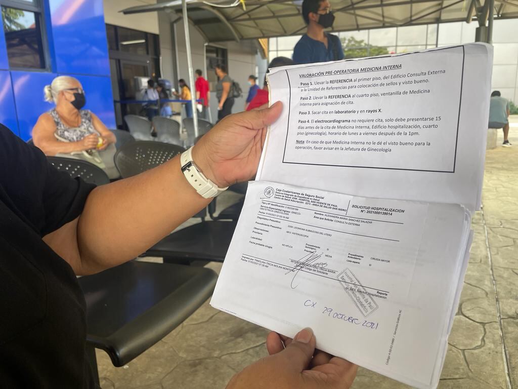 “Jalo estos papelitos desde hace unos tres años, casi. Para mí es mucho tiempo. Es preocupante. Estas son citas; unas me las cancelaron, en estas otras quedaron de llamarme y no lo han hecho. Yo realmente necesito ver si ya por este año no me van a operar o si, por lo menos, al principio del otro me hacen la cirugía. Hablé por teléfono y me dijeron que viniera”, relata mientras muestra los documentos con las múltiples referencias que ha recibido.