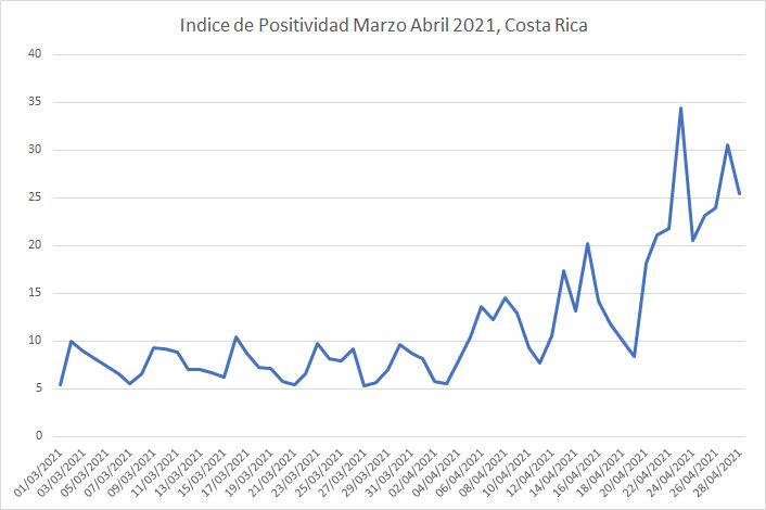 La recomendación de la Organización Mundial de la Salud (OMS) es que el porcentaje de positivos sea idealmente del 5% o al menos no pase de un 10%, cifra que Costa Rica dejó de ver desde mediados de junio.