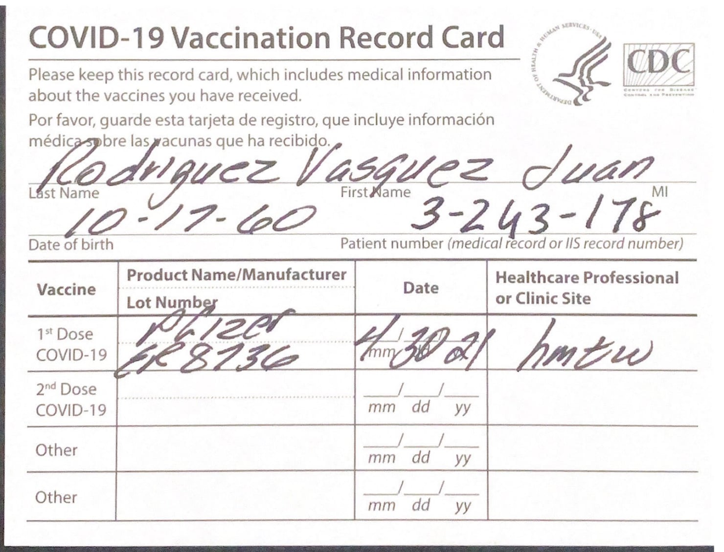 No haber hecho ese trámite en suelo norteamericano obligará a Juan Carlos Rodríguez, de 60 años, a tomar otro vuelo rumbo a Houston, Texas, para aplicarse su segunda inoculación de Pfizer, este viernes.