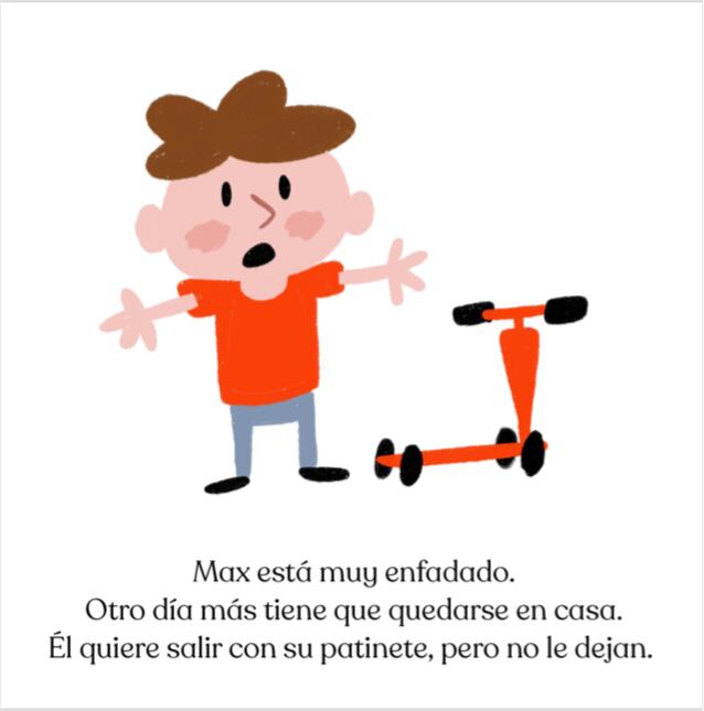 Eso pasó en la casa de Cova Díaz y su esposo, Nico Ordozgoiti, dos españoles que idearon hacer un cuento con dibujos para quitarle el enojo a su hijo Max, de tres años, quien con frecuencia les decía: “¡Quiero salir!".