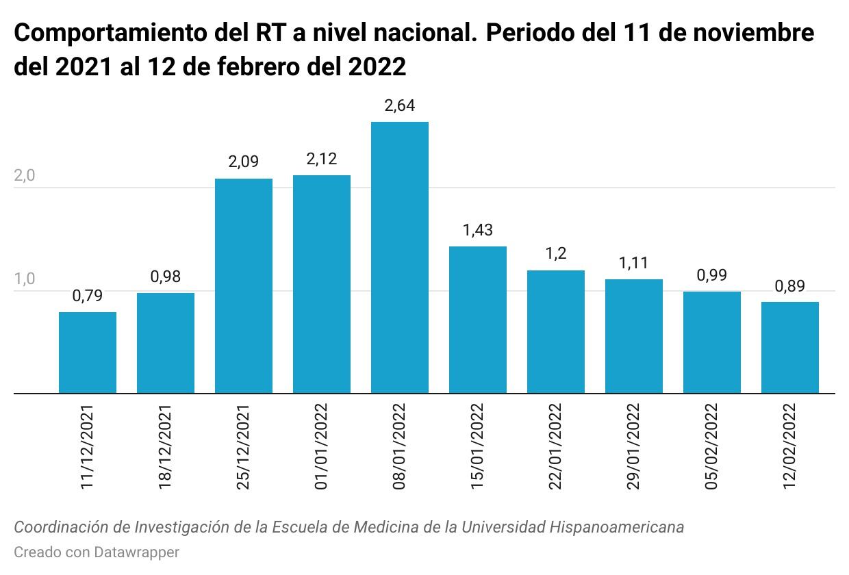 La velocidad de contagio del SARS-CoV-2 descendió por quinta semana consecutiva. La tasa de reproducción del virus responsable de la covid-19, o tasa R (Rt), se ubicó en 0,89, lo cual quiere decir que hoy cien personas contagian a 89; a inicios de febrero, el contagio llegaba a 99.