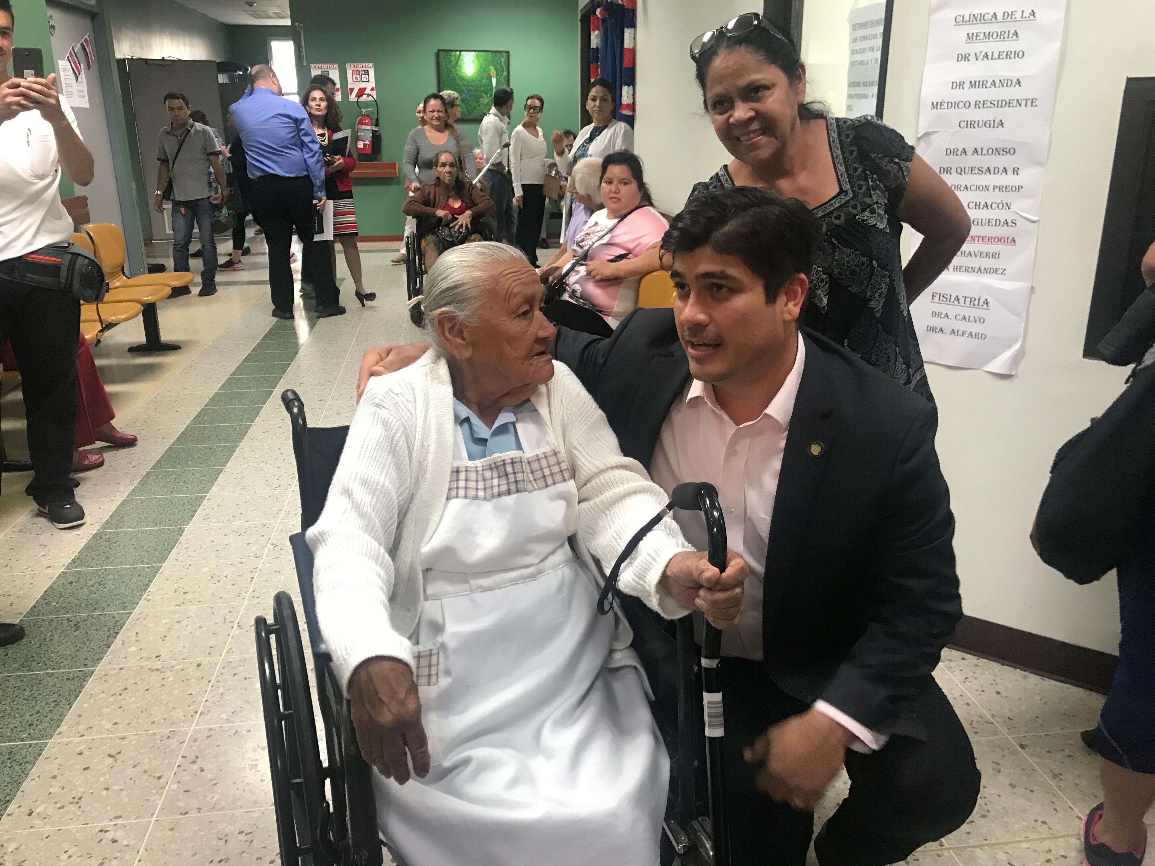 El recorrido lo hizo en compañía del presidente ejecutivo de la Caja, Román Macaya, miembros de la Junta Directiva y de las gerencias de esa institución, y del Consejo Nacional de la Persona Adulta Mayor (Conapam).