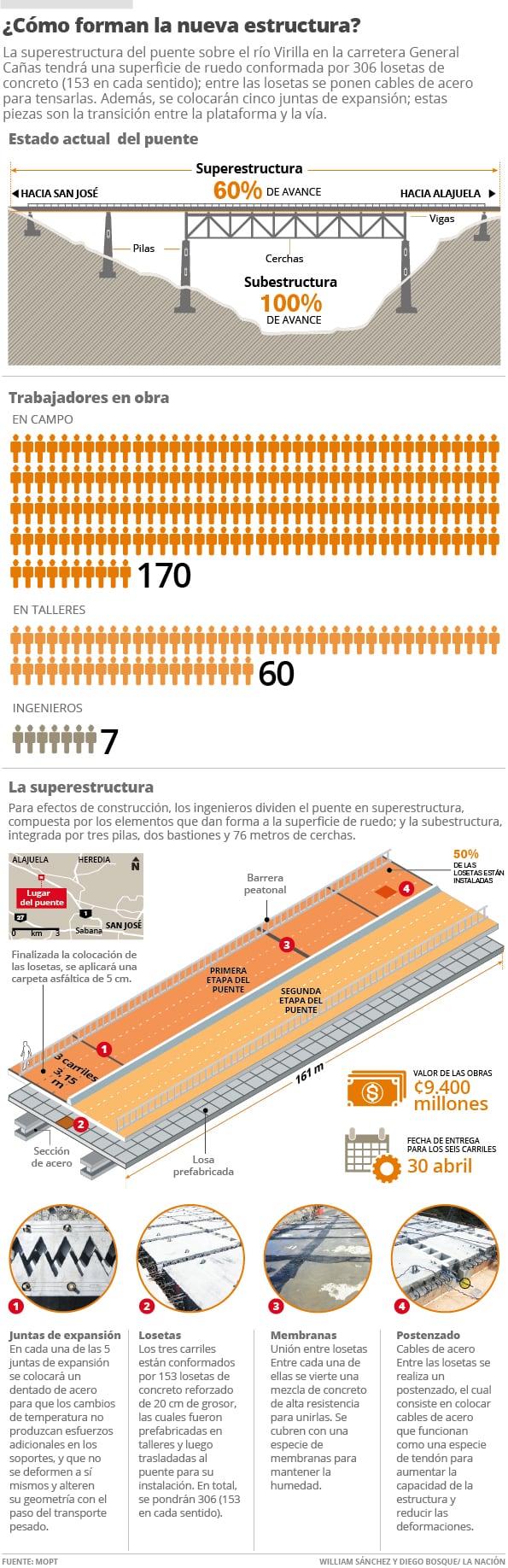El miércoles anterior, el Gobierno reabrió el nuevo puente de 161 metros, el cual pasó de cuatro a seis carriles y se reforzó por completo. Solo la fase de reforzamiento y ampliación, desarrollada entre 2013 y 2017, tuvo un costo de ¢7.400 millones ($12 millones).