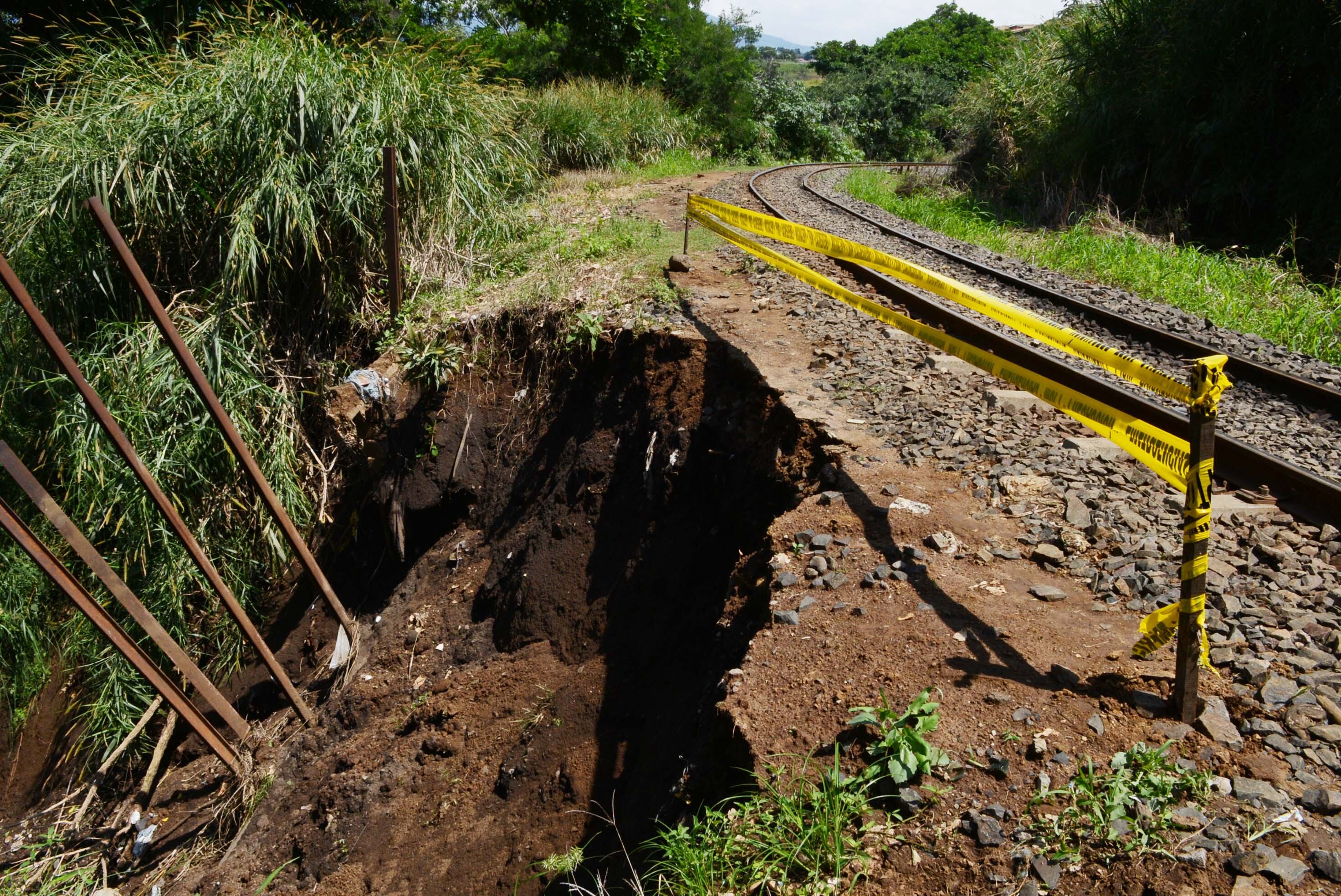 El servicio de tren entre Heredia y San José estará suspendido al menos por una semana debido a un deslizamiento que afecta la vía férrea cerca del puente sobre el río Virilla.