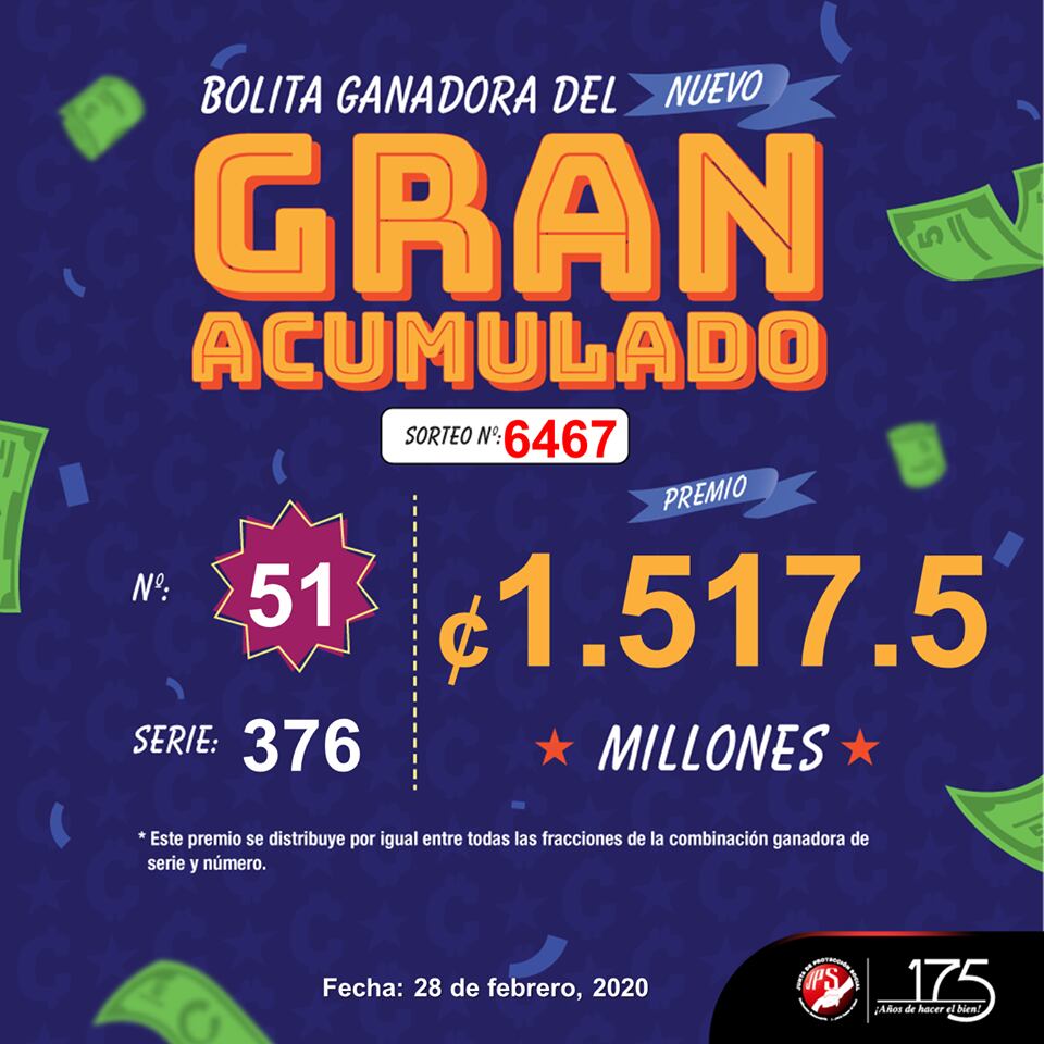De inmediato, JPS también anunció que el premio comienza a acumularse otra vez a partir de ¢500 millones. Se jugará el domingo 1.° de marzo.