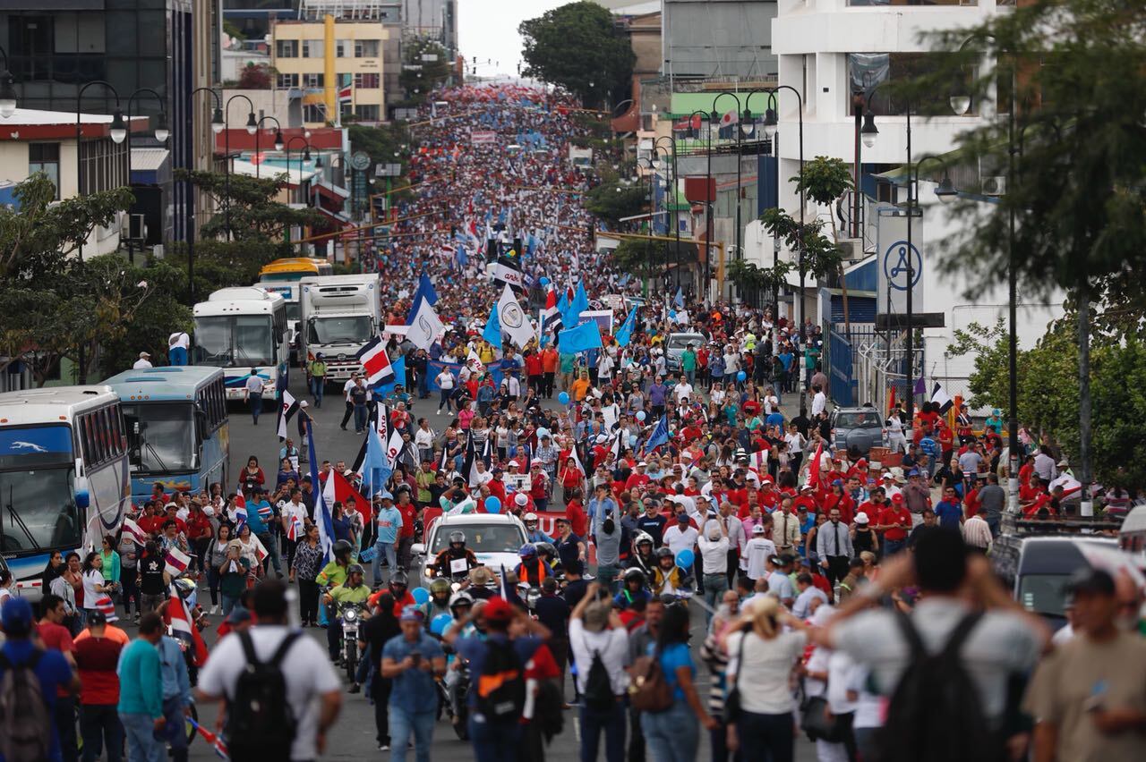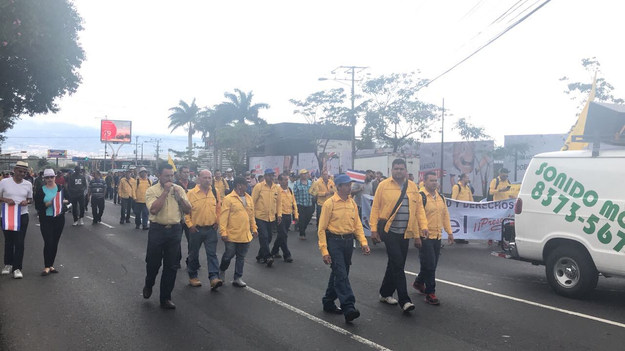 9:41 a. m. Empleados del Instituto Costarricense de Electricidad (ICE) marchan por el paseo Colón para sumarse al movimiento, que llegaría a la Asamblea Legislativa. La caminata complica el tránsito por la zona.