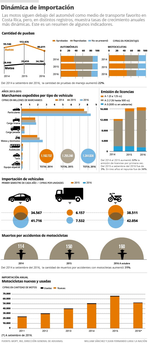 Durante los primeros nueve meses del 2016, el Ministerio de Obras Públicas y Transportes (MOPT) le otorgó la licencia a un total de 16.600 motorizados debutantes.