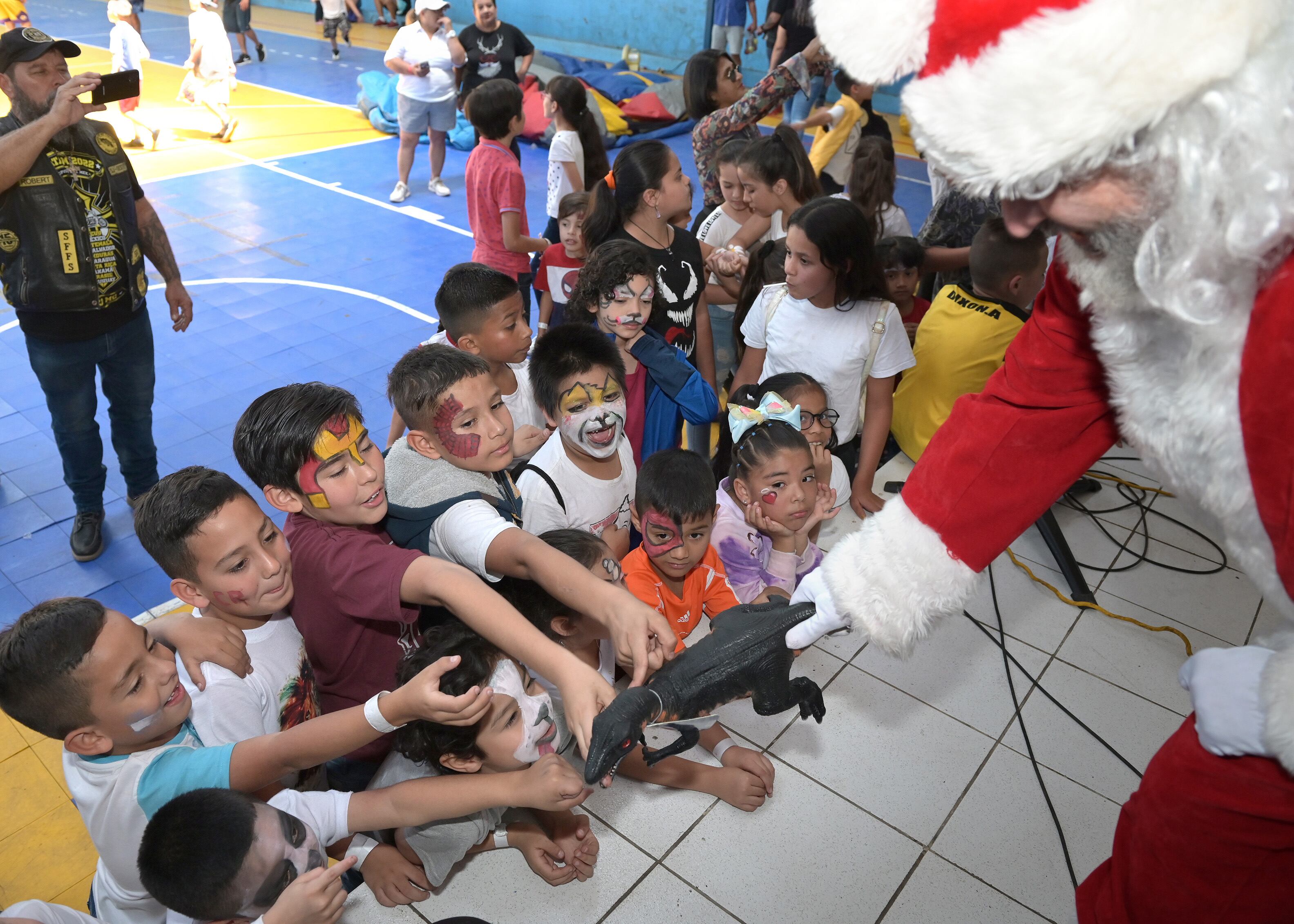 Hubo regalos, comida, música, inflables, y hasta la emoción de una vueltita en moto, que subió la adrenalina. Esa fue la experiencia que vivieron niños de comunidades de Alajuela y también de barrio Cuba, en San José, donde participaron unos 250 menores que llegaron al gimnasio, donde también recibieron paquetes con ropa.